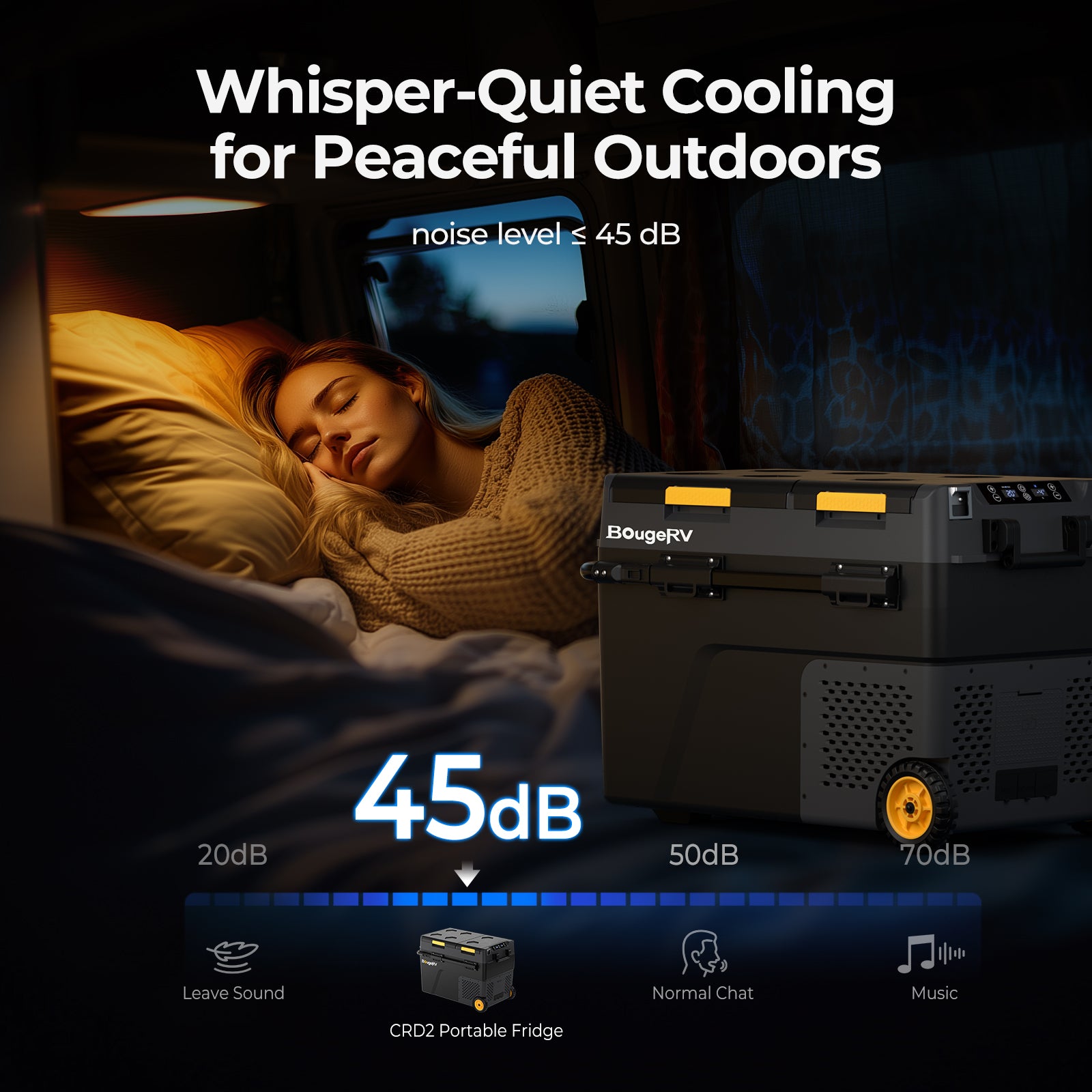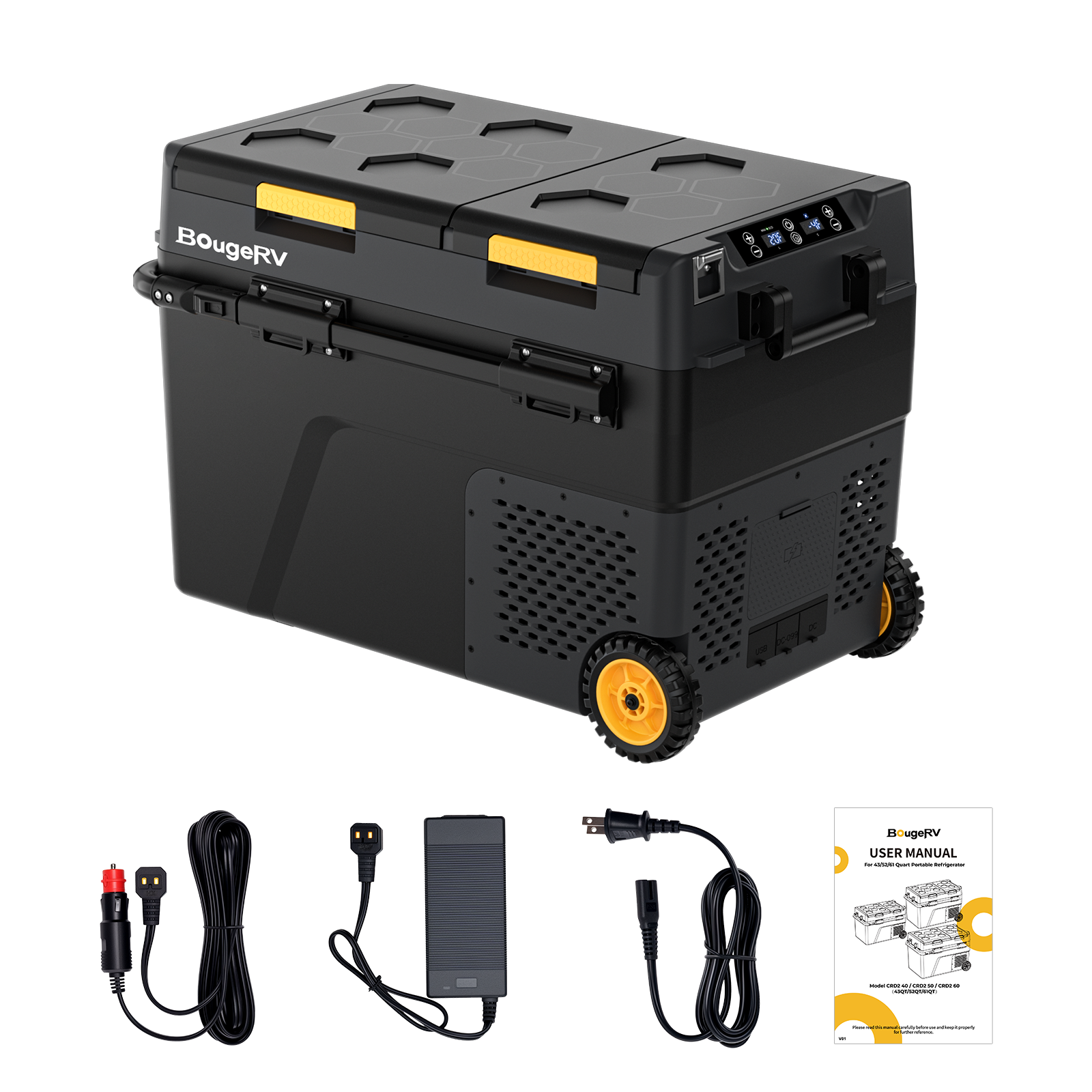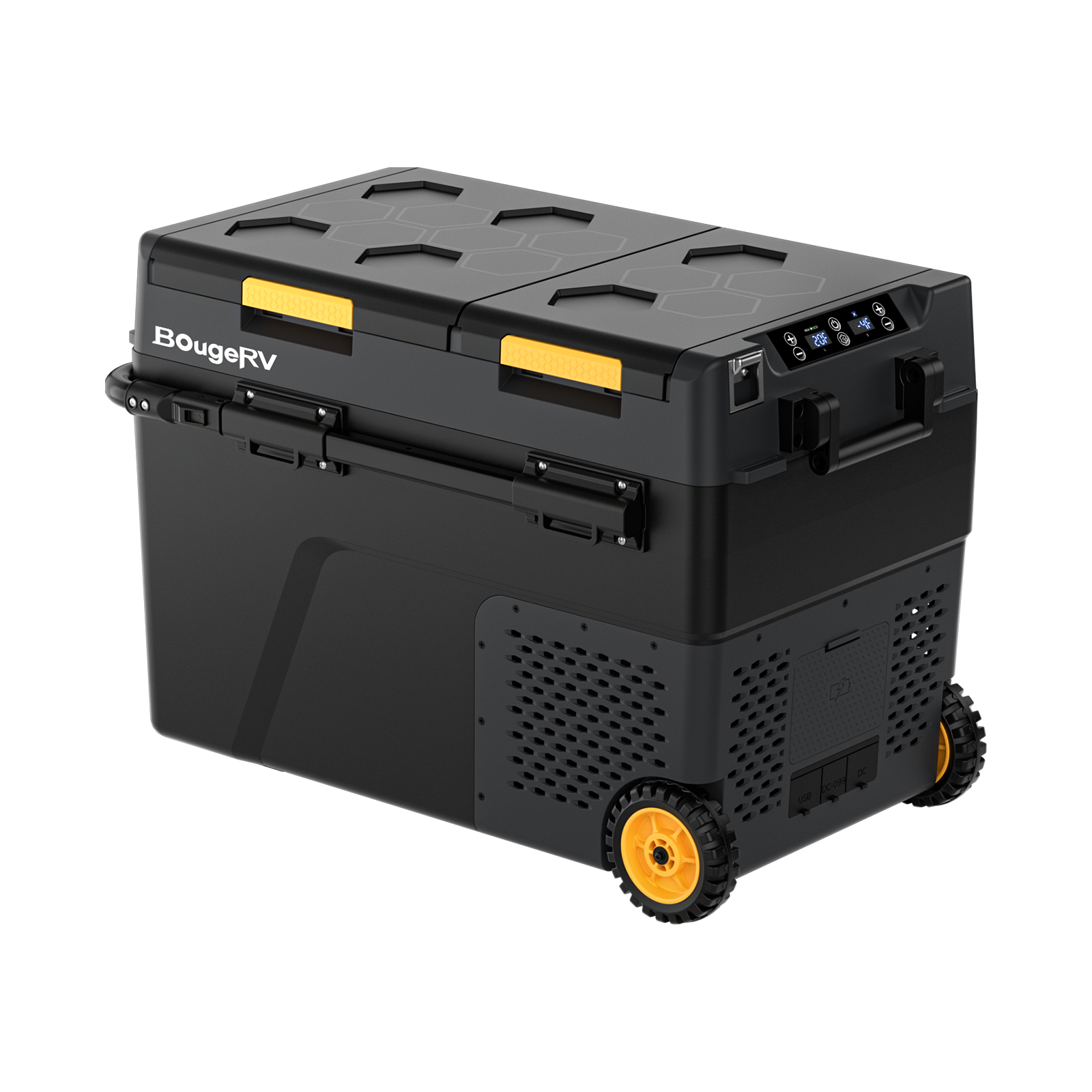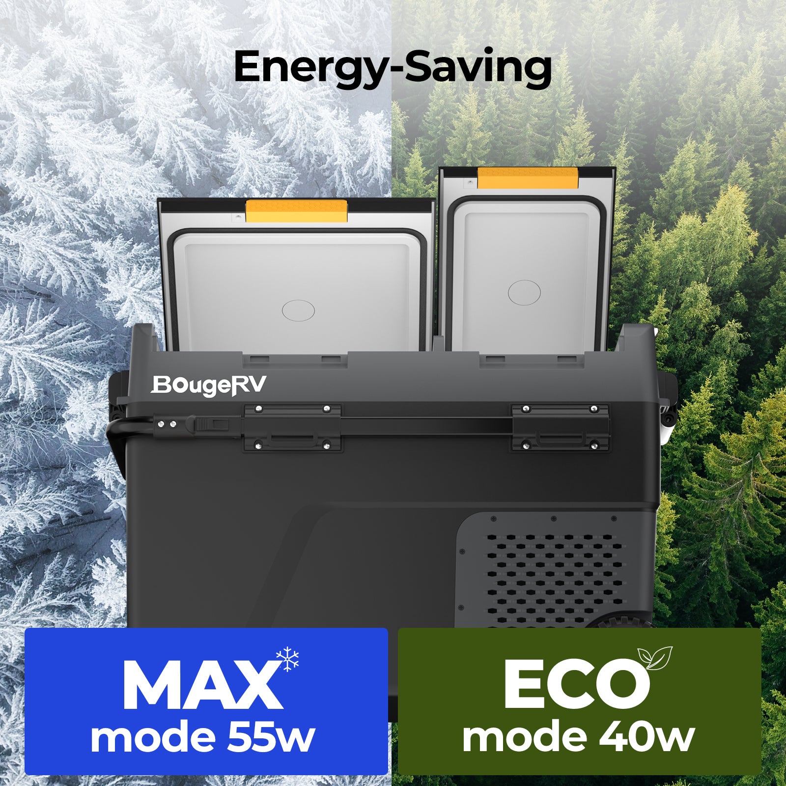 BougeRV portable fridges offer smartphone control via app for adjusting temperature and monitoring status remotely.