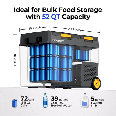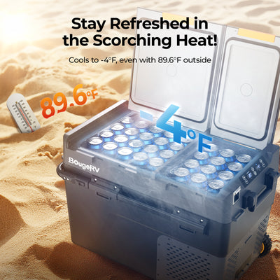 BougeRV RV refrigrator can cool down to 32°F (0°C) or freeze down to -4°F (-20°C), depending on the settings. Ideal for long trips or full-time RV living.