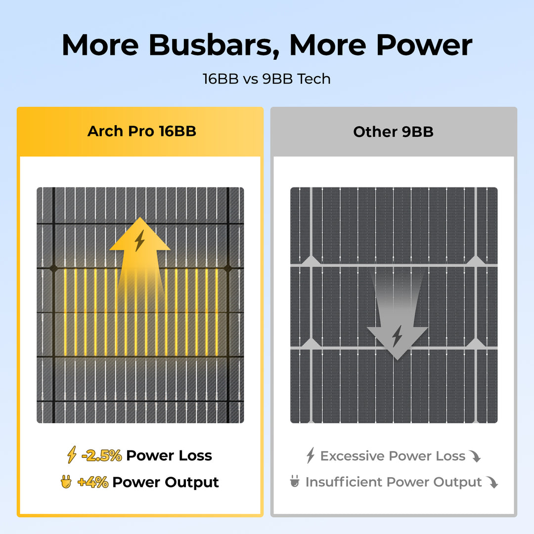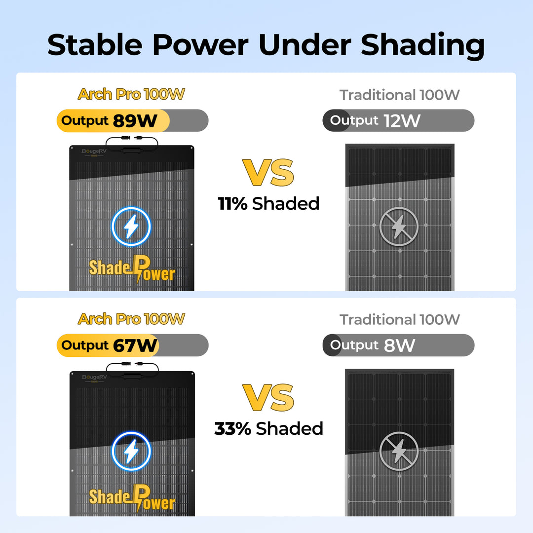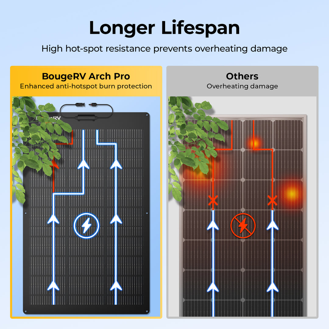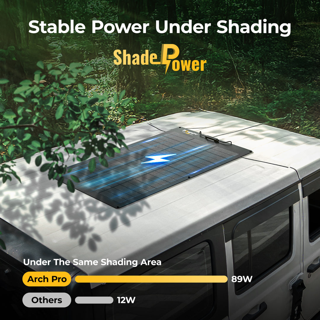 The Arch Pro 100W solar panel boasts a high conversion efficiency of 25%, thanks to its advanced N-Type TOPCon technology. This makes it one of the most efficient flexible solar panels available, ensuring optimal energy production for your off-grid needs.
