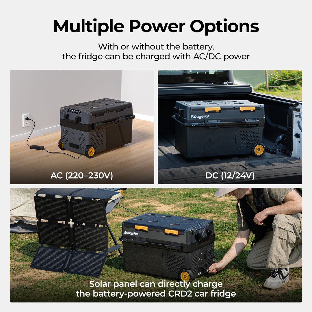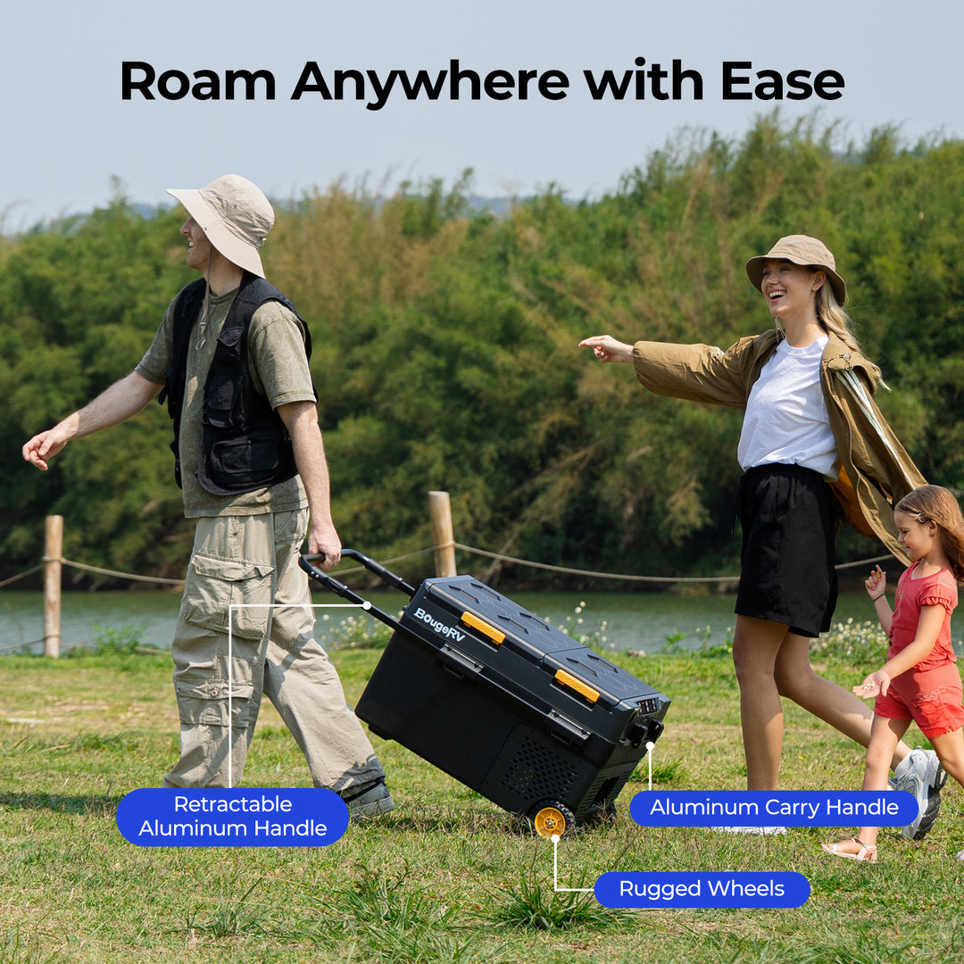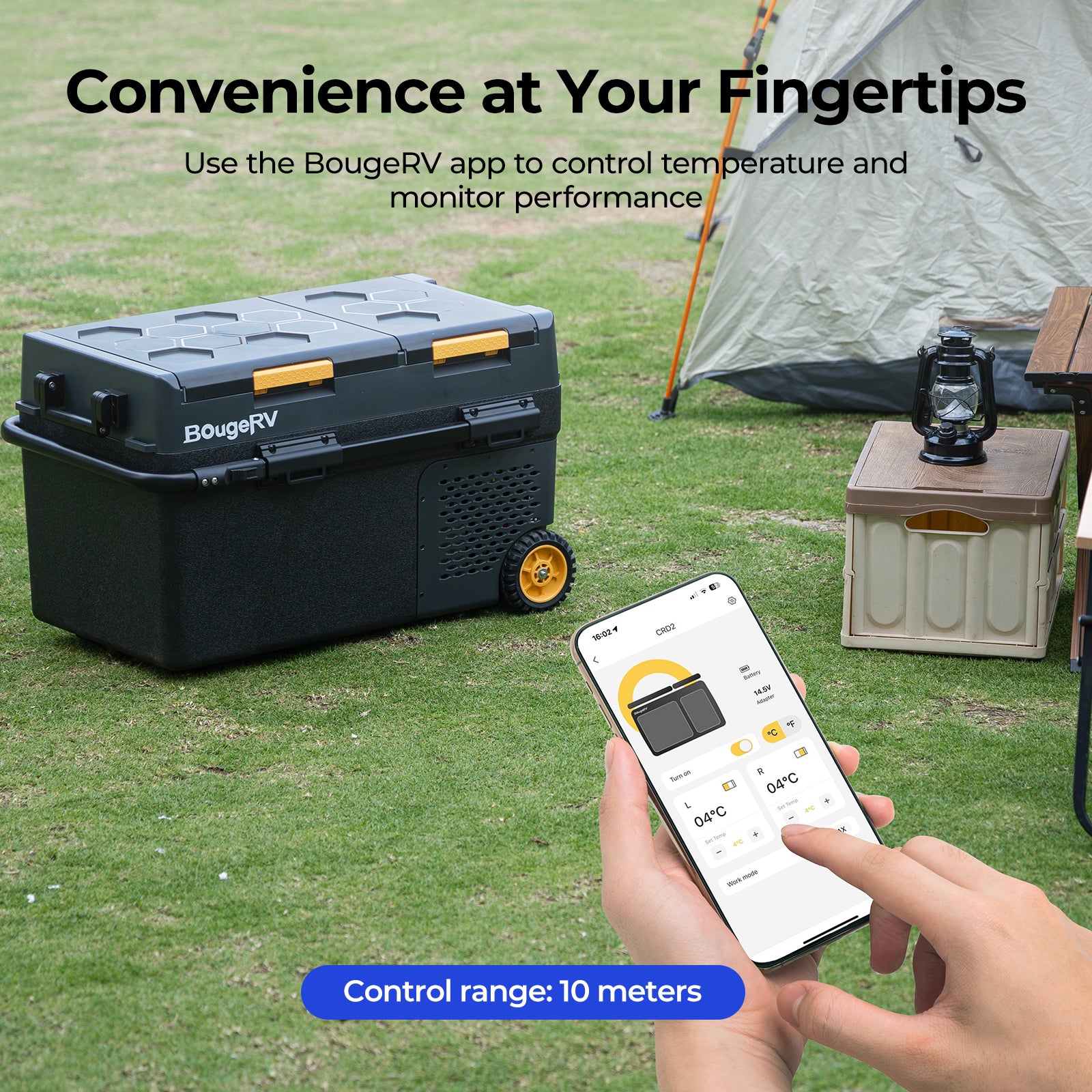 BougeRV portable fridges offer smartphone control via app for adjusting temperature and monitoring status remotely.