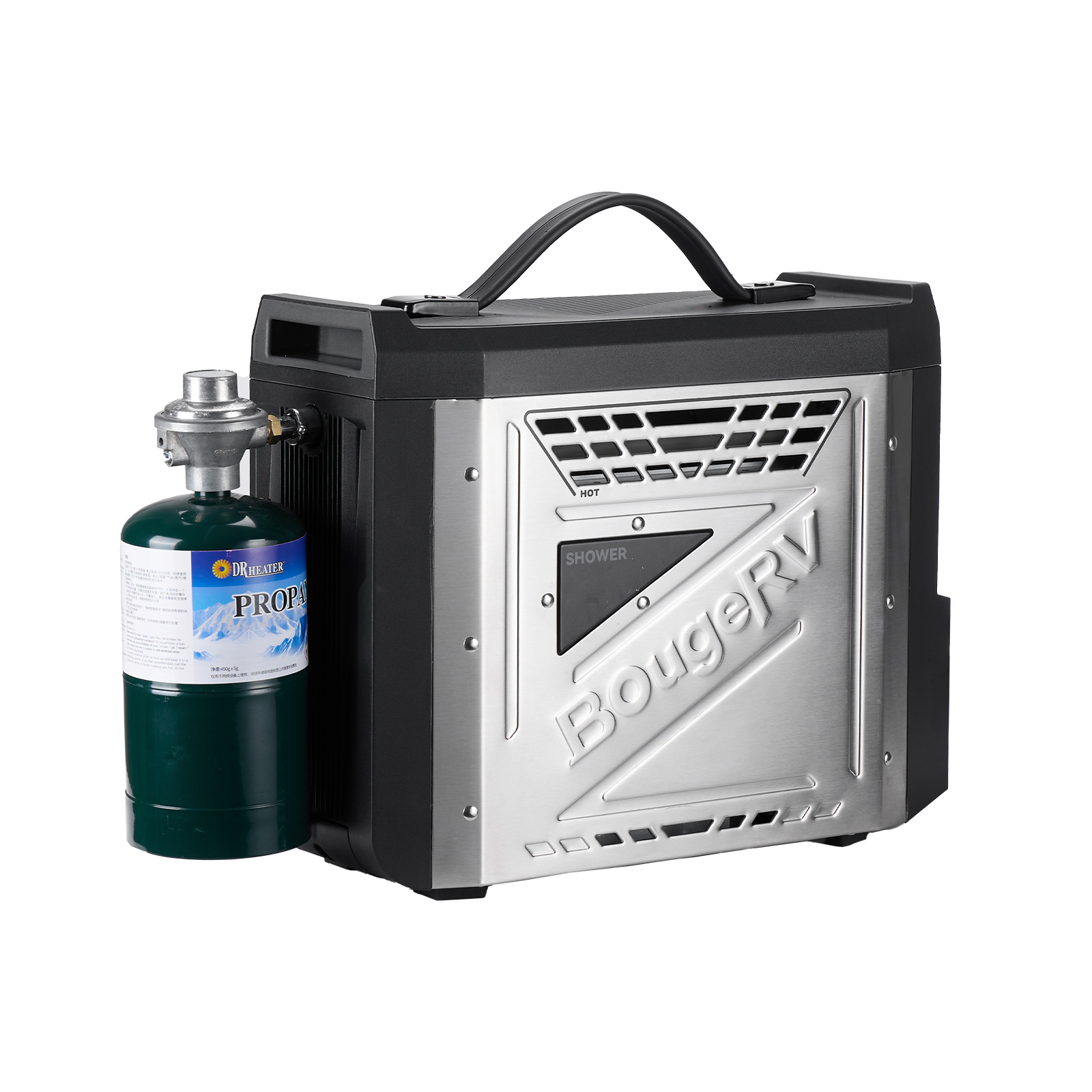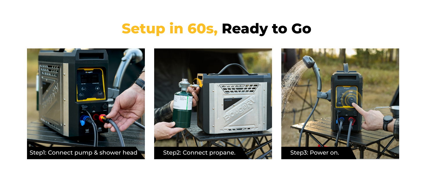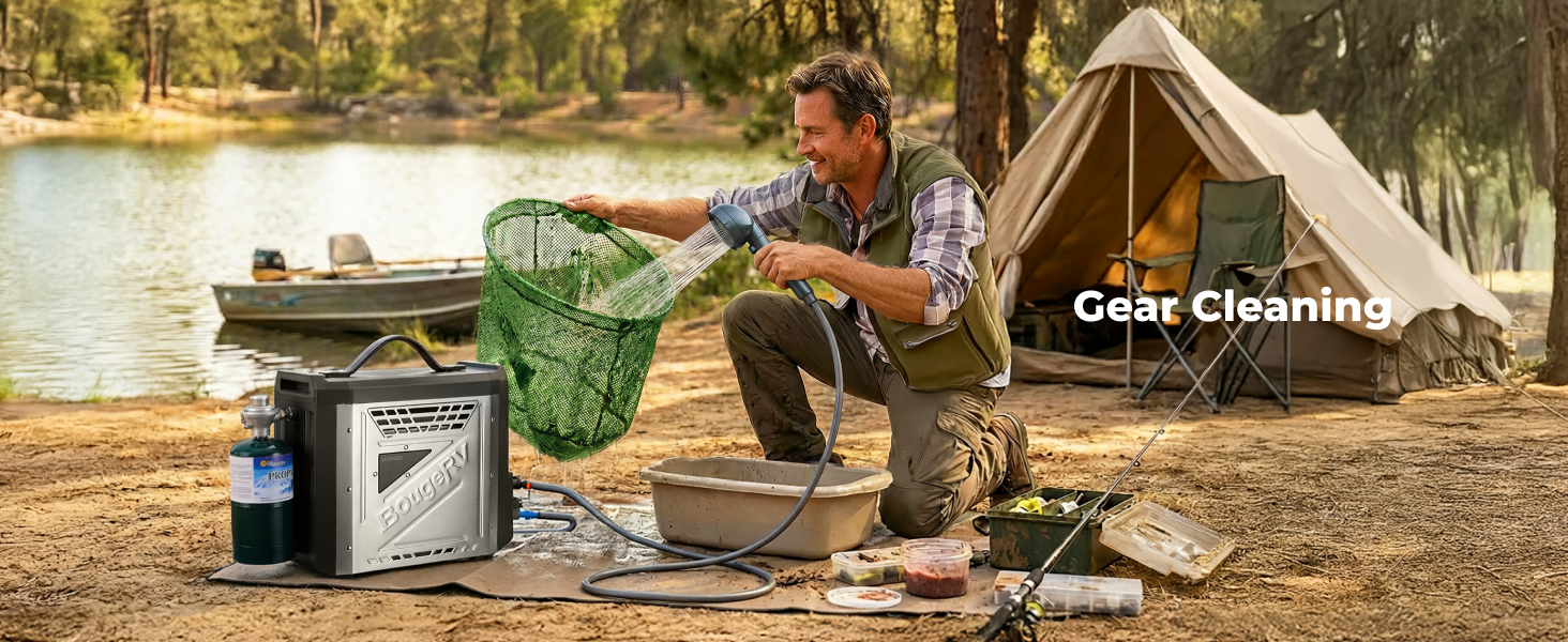 This portable water heater heats water in approximately 3 seconds, giving you instant hot water for outdoor showers, cleaning, or daily use while camping or traveling.