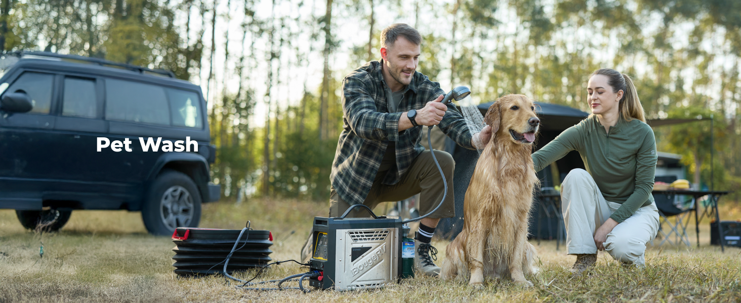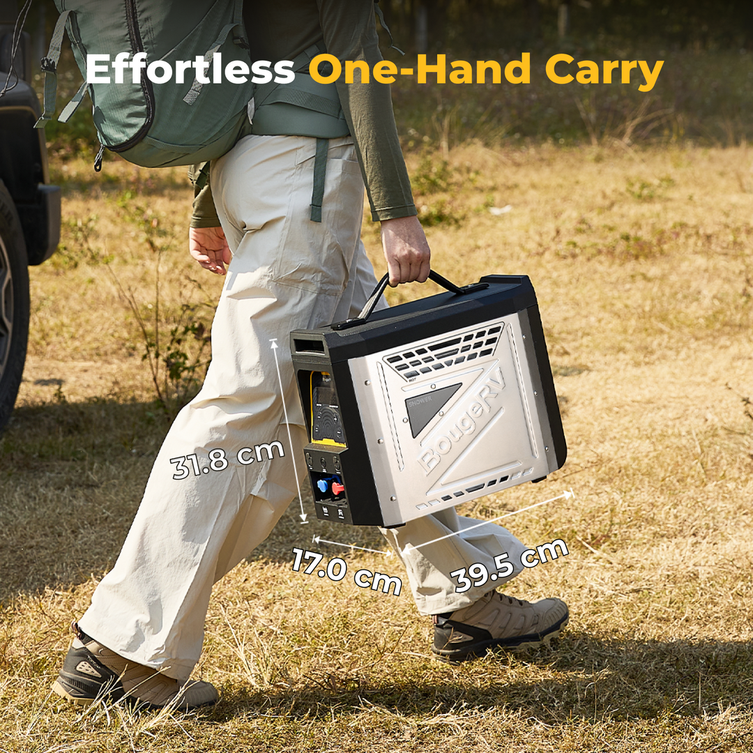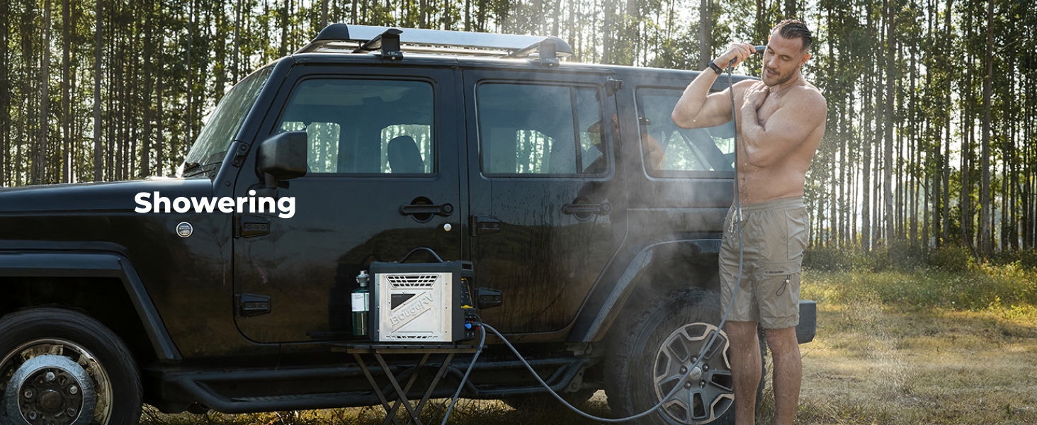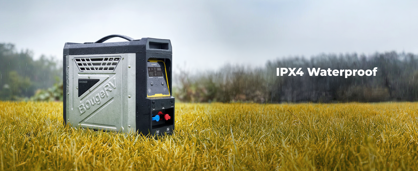 The BougeRV portable water heater features a built-in 4000 mAh rechargeable lithium-ion battery. A full charge can power the water pump for up to 15 showers, giving you multiple uses of hot water outdoors without recharging.