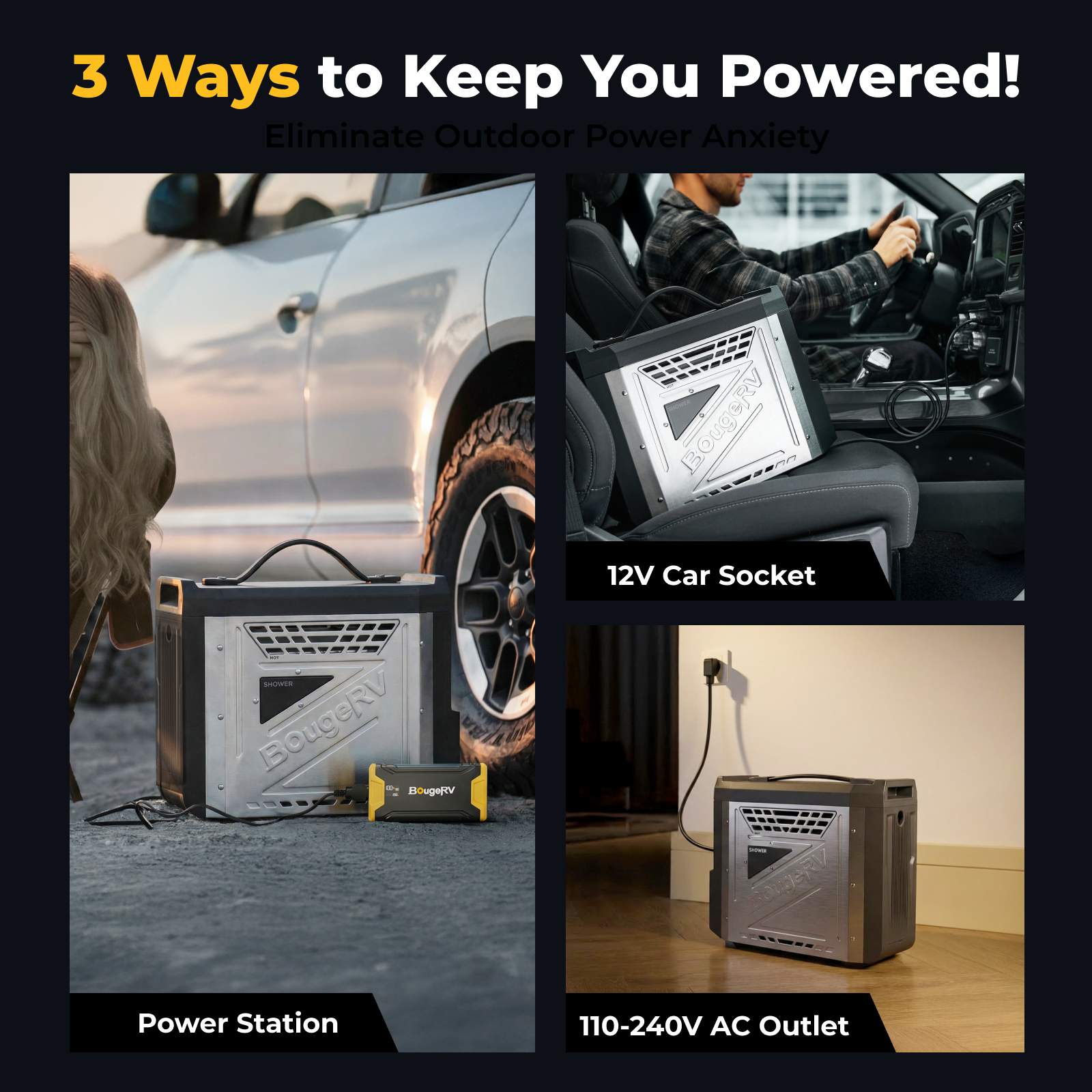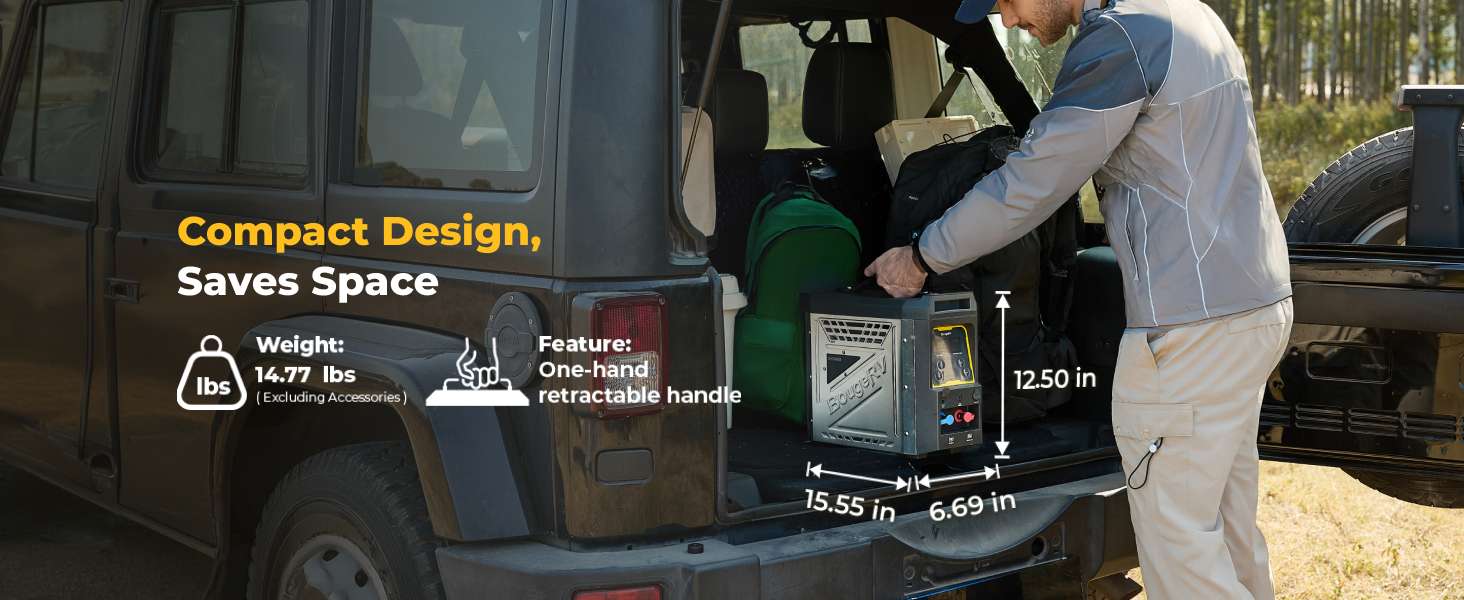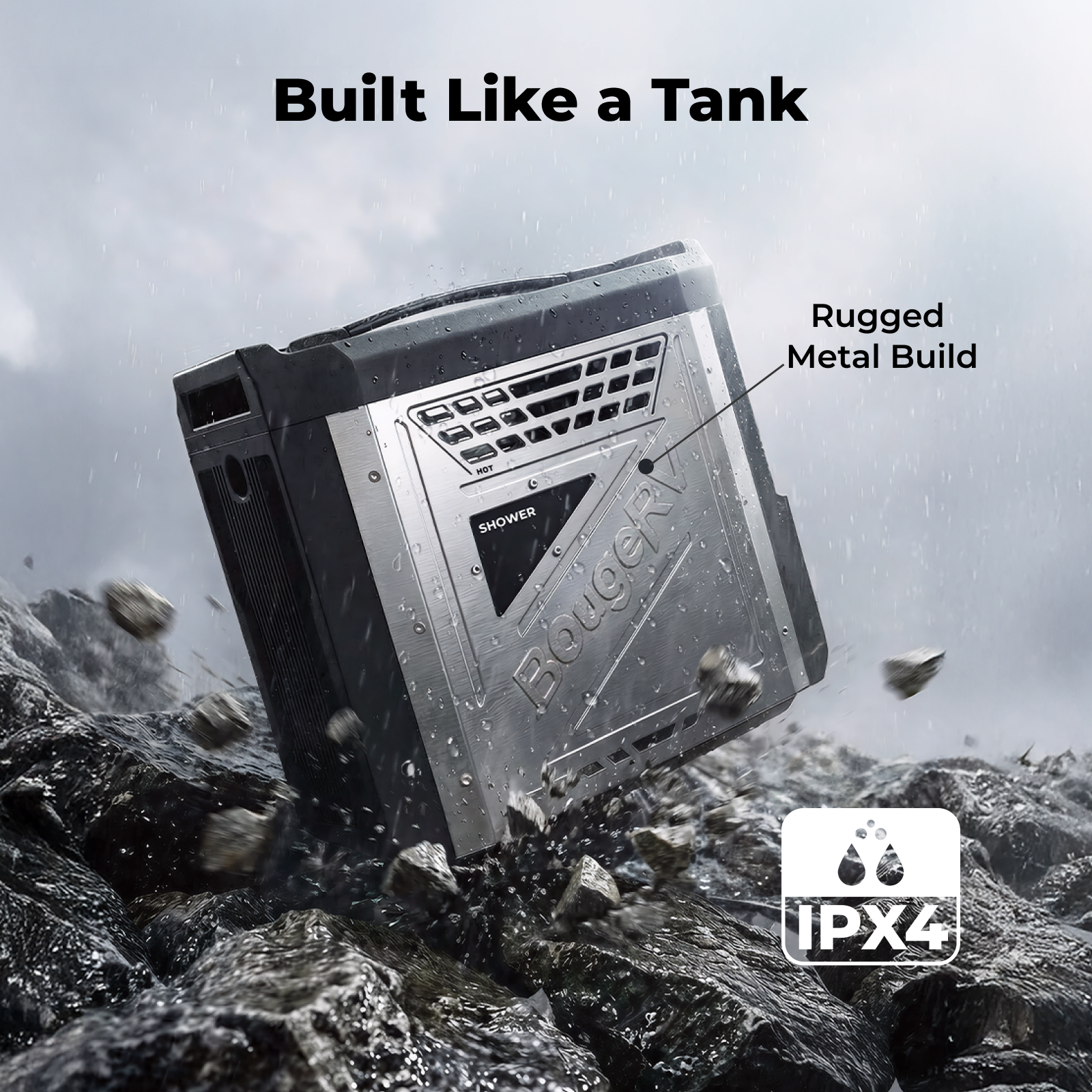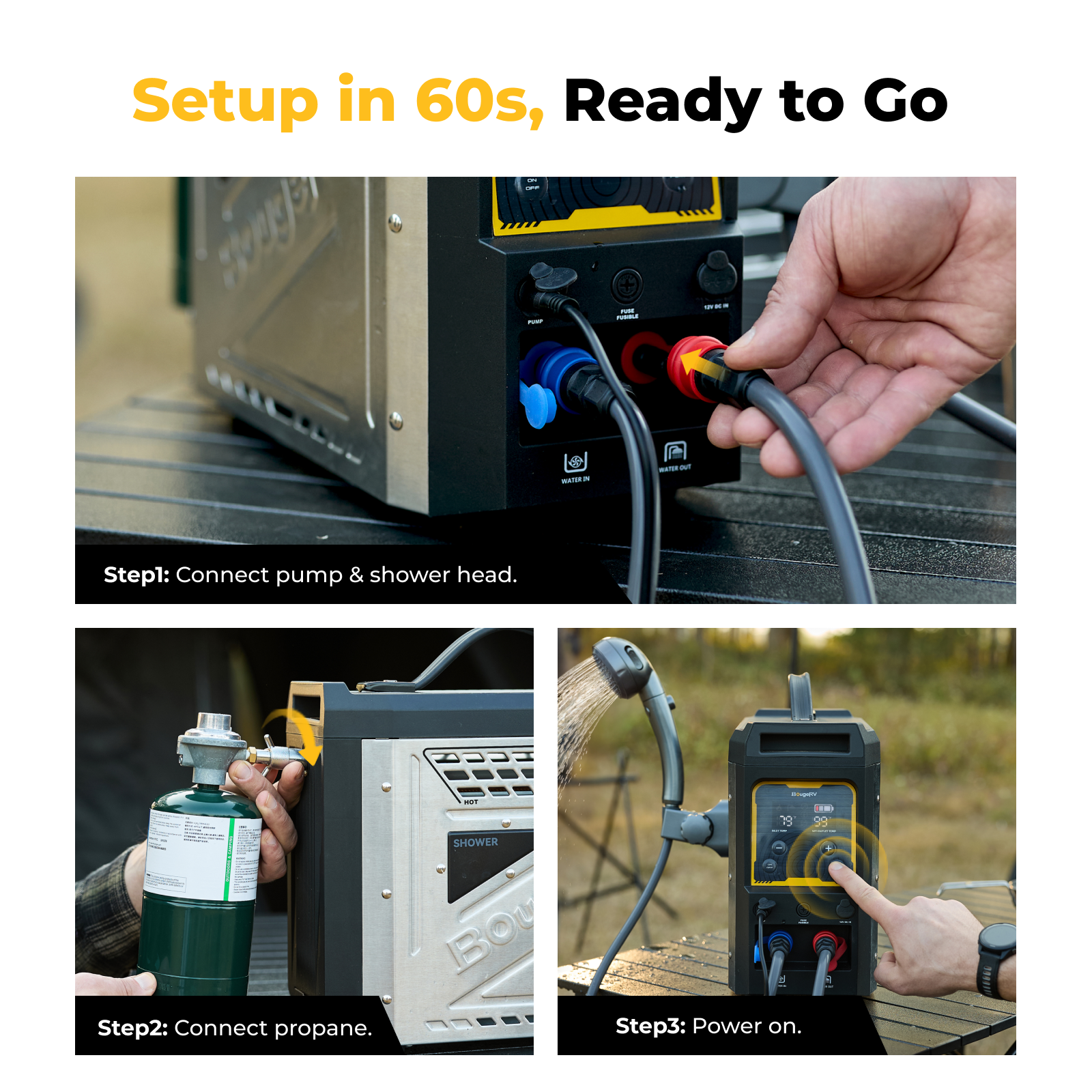 The BougeRV portable water heater features a built-in 4000 mAh rechargeable lithium-ion battery. A full charge can power the water pump for up to 15 showers, giving you multiple uses of hot water outdoors without recharging.