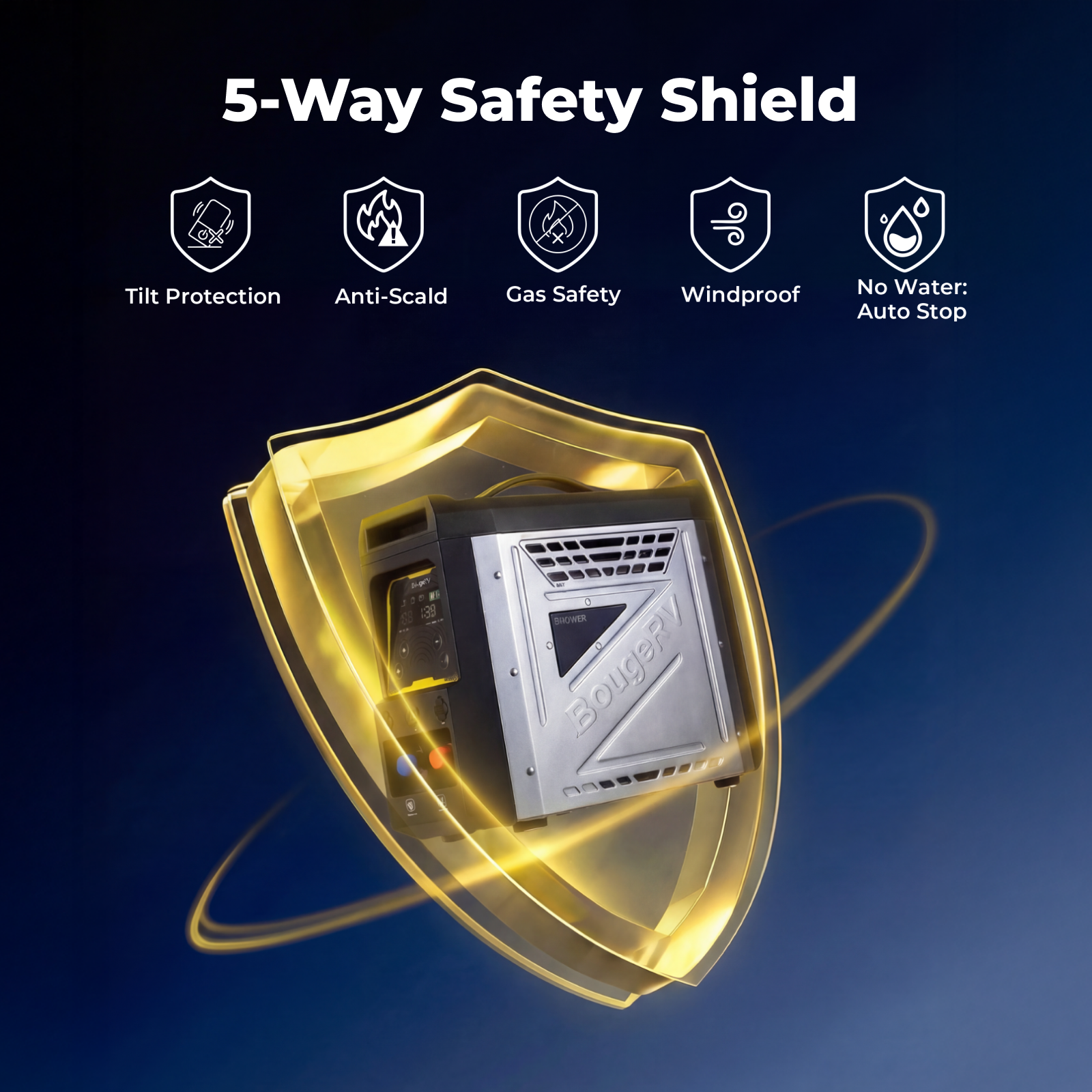 Yes. The water heater features multiple safety protections, including flame failure shut-off, overheating protection, tilt protection, gas safety, and automatic power-off, ensuring safe operation for every outdoor use.