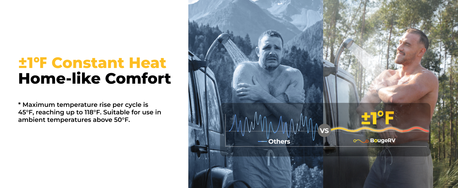 Yes! BougeRV water heater lets you precisely adjust and monitor water temperature using its digital display panel. Simply set your desired temperature, and the heater will maintain it, providing comfortable and consistent hot water for showers, washing dishes, or outdoor activities.