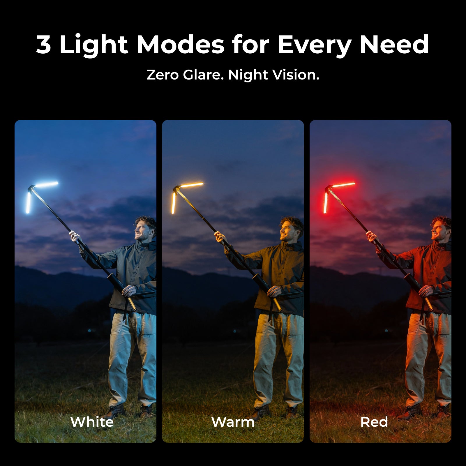 Yes. BougeRV telescopic camping light offers adjustable brightness with three levels: 900 lumens, 1800 lumens, and 3000 lumens. It also allows you to switch between cool and warm light settings for different lighting needs.